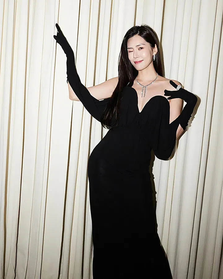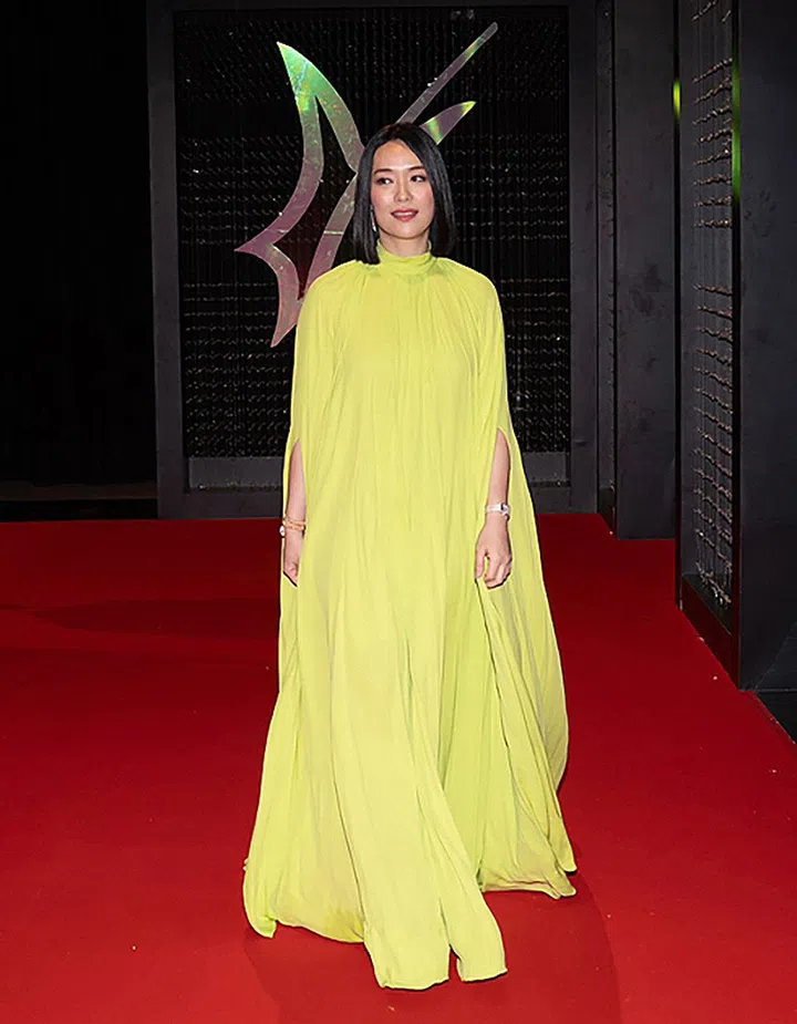 阿姐郑惠玉去年秉持可持续时尚理念,选穿了两件来自高端转售平台Vestiaire Collective的高级定制系列礼服。今年,郑惠玉则穿着Tom Ford vintage礼服搭配Cartier高级珠宝出场,展现自信优雅的大将风采。