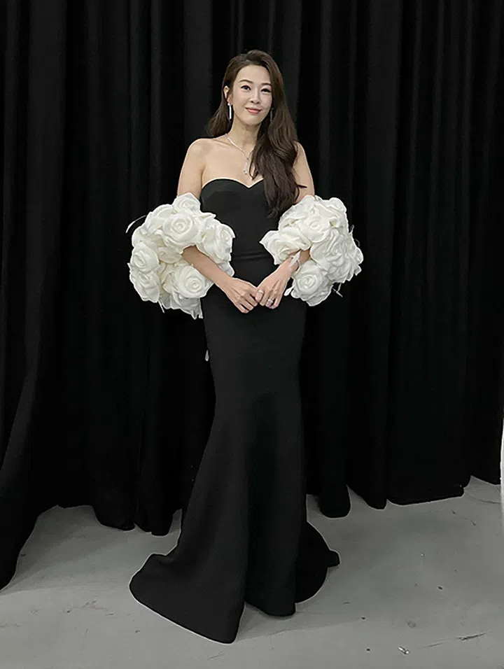其造型师莉蓉分享:要在本地为艺人置装确实很有挑战性,今年尤其困难重重。这次很感谢刘子绚抽出宝贵时间多次试衣(总共试穿了20多套!),最后在《红星大奖2024》两天前才确定这套Nicole+felicia为她刚刚量身定做的“花朵”礼服。剪裁非常合身,我们最后都很满意。