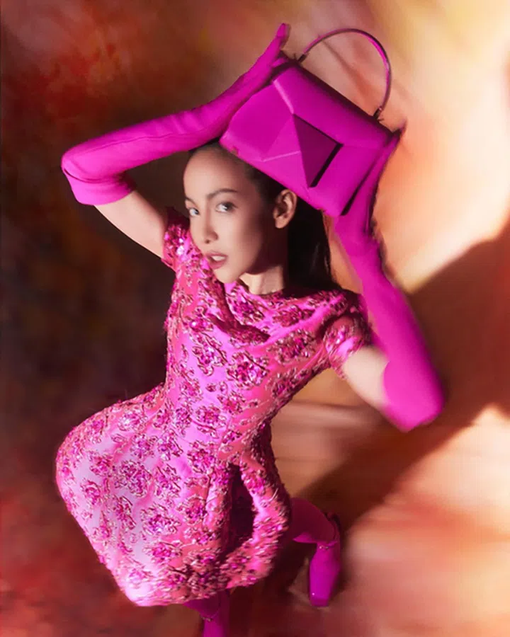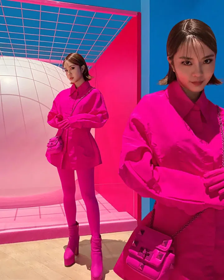 Valentino日前在巴黎举办“Unboxing Valentino” 2023春夏时装秀,Chantalle也以一身粉色造型+Roman Stud手袋,邀粉丝一起看秀。