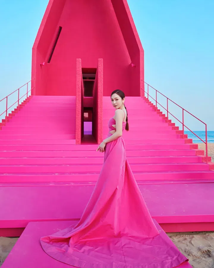 郑秀妍出席Valentino在中国秦皇岛市的阿那亚黄金海岸举办的Valentino Pink PP粉耀海岸活动(早前LV也在阿那亚黄金海岸办过男装秀),穿着品牌今年早春系列,并搭配Loco手袋,照片超惊艳。