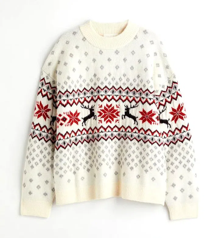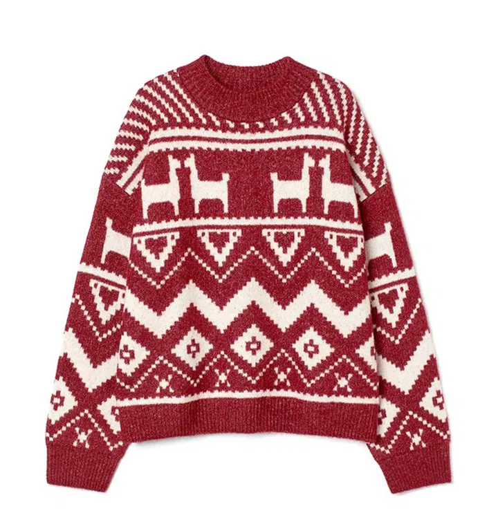 红底白色几何图案搭配一对又一对可爱的大羊驼,宽松的廓形确保你在这佳节里温暖舒适。