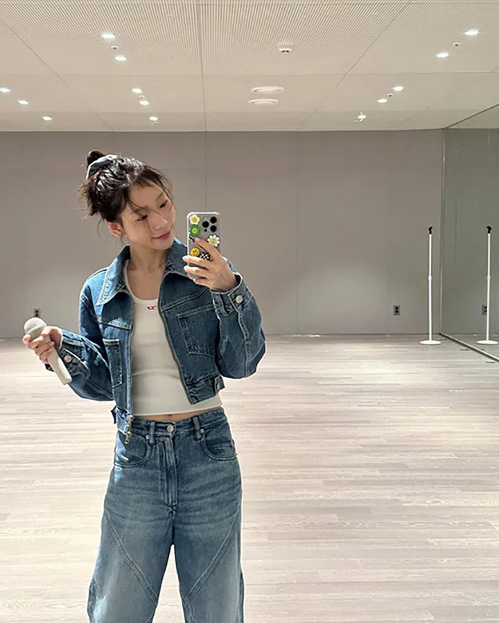 纯色背心可是今年夏天正当红的单品之一。无论是直接穿上搭配工装裤/牛仔裤,或是像泰妍一样叠加短款牛仔外套,呈现“双牛仔”造型,都是又潮又时尚的穿法噢~