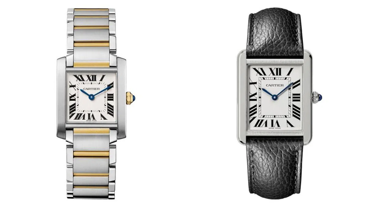 从名字不难猜出,Tank腕表确实和坦克有关。Louis-François Cartier自在战场上屡建奇功的Renault FT-17坦克俯视图得到设计线条:长方形表壳形似车身,两条垂直表耳犹如坦克履带。系列大部分腕表以罗马数字作时标,搭配标志性Chemin de fer轨道式分钟刻度外加完美比例和优雅气质,无论男女都为之吸引。
