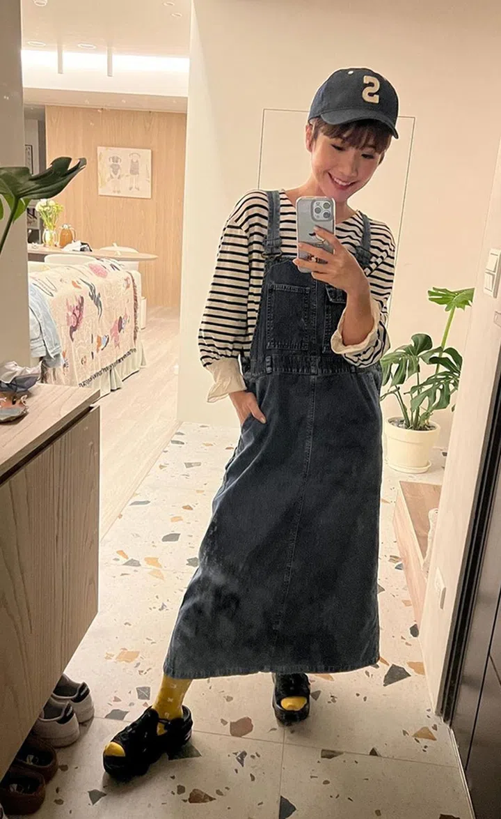吊带连身裙是身材偏瘦小型女友的best friend。Lulu以条纹上衣搭配牛仔吊带连身裙,在视觉上拉长身型,再也不娇小。