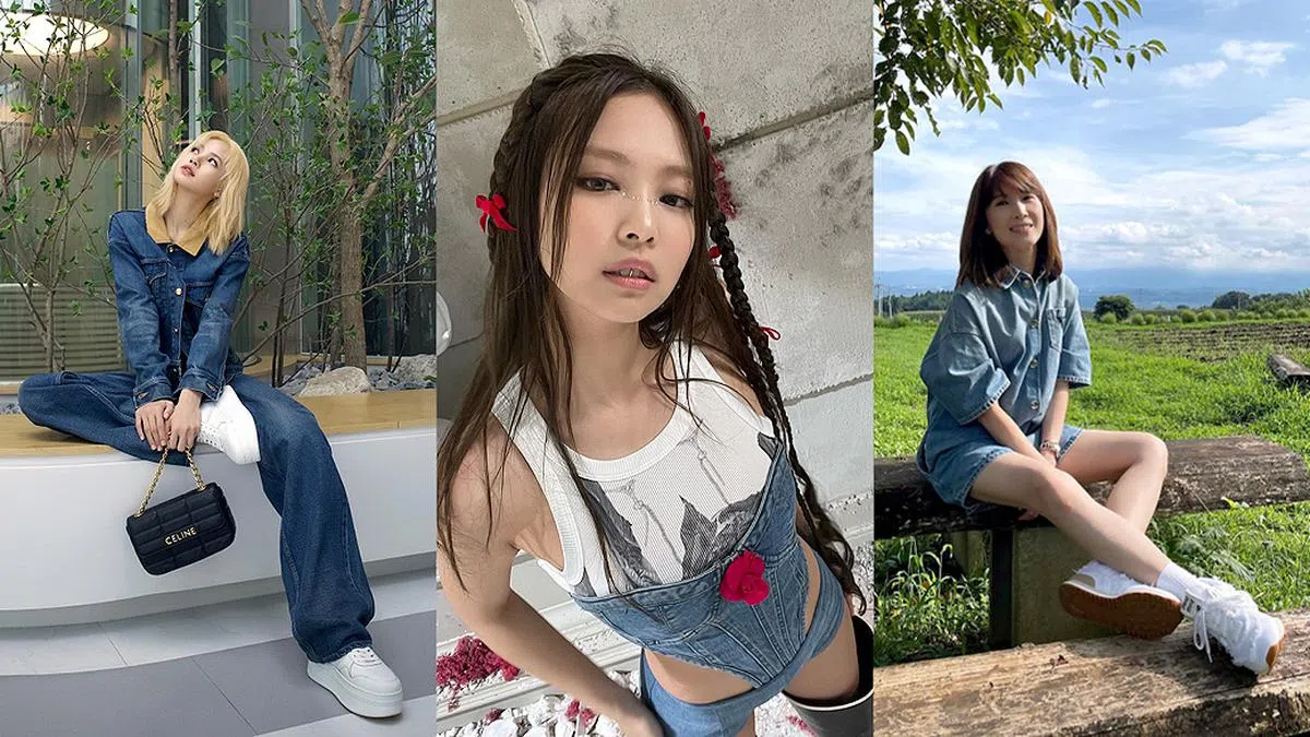Lisa穿牛仔裤及夹克套装,搭配品牌厚底小白鞋及Matelasse绗缝链袋。造型轻快,舒适有型又彰显年轻态度。