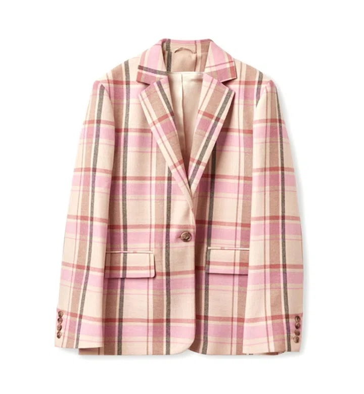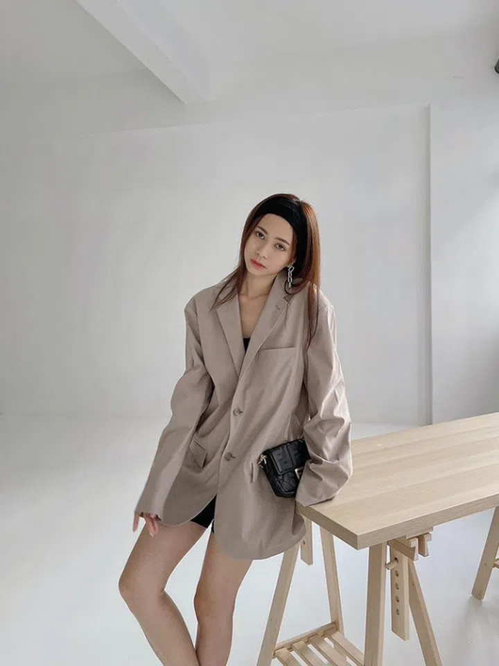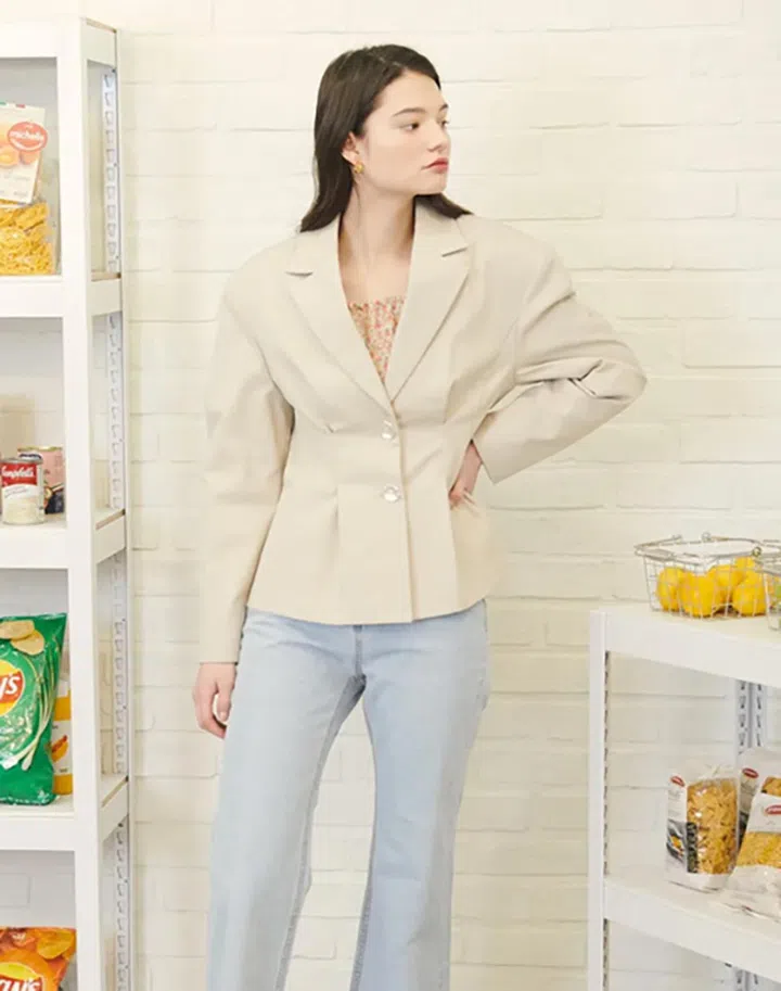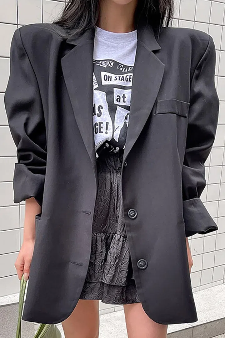 立体剪裁的西装外套设计,充满着韩系时尚的气息(totally可以想象Blackpink的Lisa将这件外套穿上,炫出自身著名的“Lisa肩"),穿上即可时尚感加分!