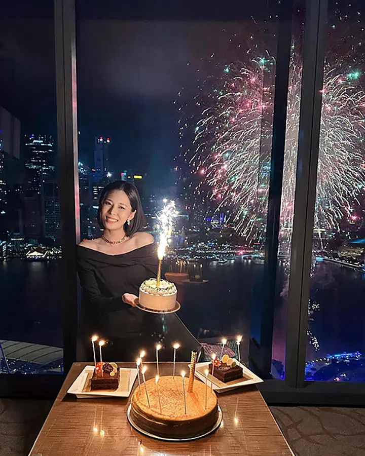 1月1日是黄思恬的生日,大家在跨年的时候,她也和圈内好友一起庆祝了她的29岁生日。黄思恬穿着柔美的露肩小黑裙配搭金色链条choker,身后的灿烂烟花和蛋糕上的“烟花蜡烛”相应成趣。