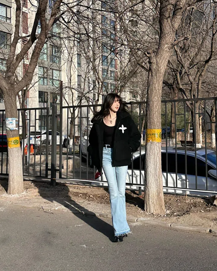 旅行就是到处走走逛逛,小编推荐穿上一款修身的高腰微喇牛仔裤搭厚底乐福鞋/德比鞋,既能拉伸线条、显瘦显高,又不怕长时间步行累脚。可外搭泰迪绒外套或仿皮草外套,把本地难以驾驭的时尚潮品在旅途中好好秀一番。