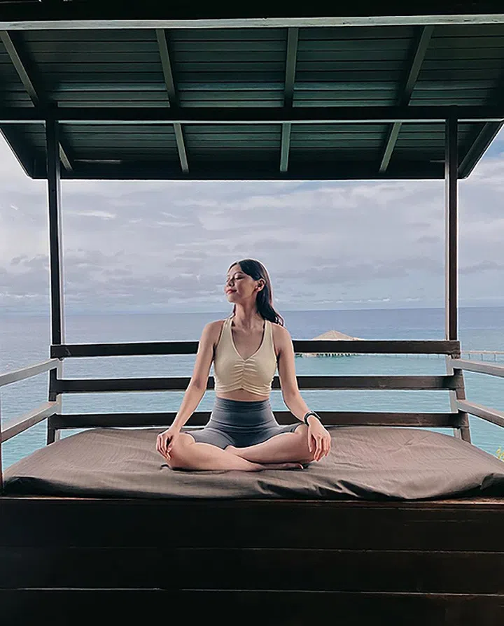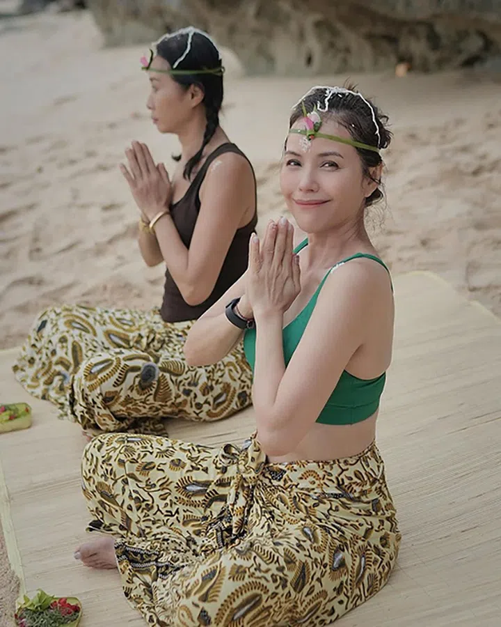 运动内衣+运动裤是唯一的公式?阿姐郑惠玉亲自示范运动装的多元性!之前受邀前往Bvlgari Resort的阿姐,在巴厘岛也以运动内衣+Sarong裙的造型练习着瑜伽(女友们需要衡量运动的强度进行筛选哦~)