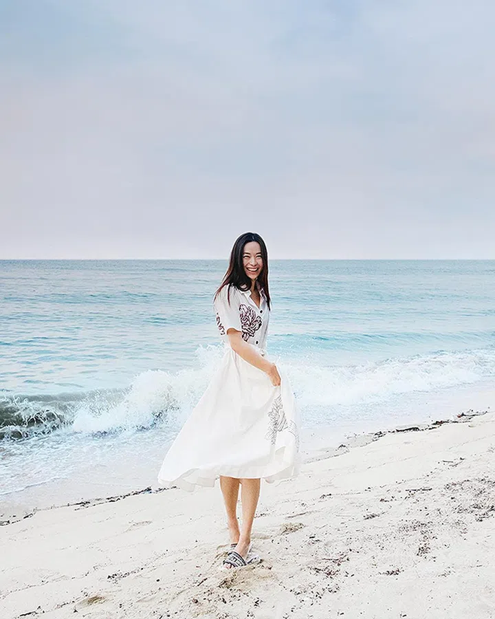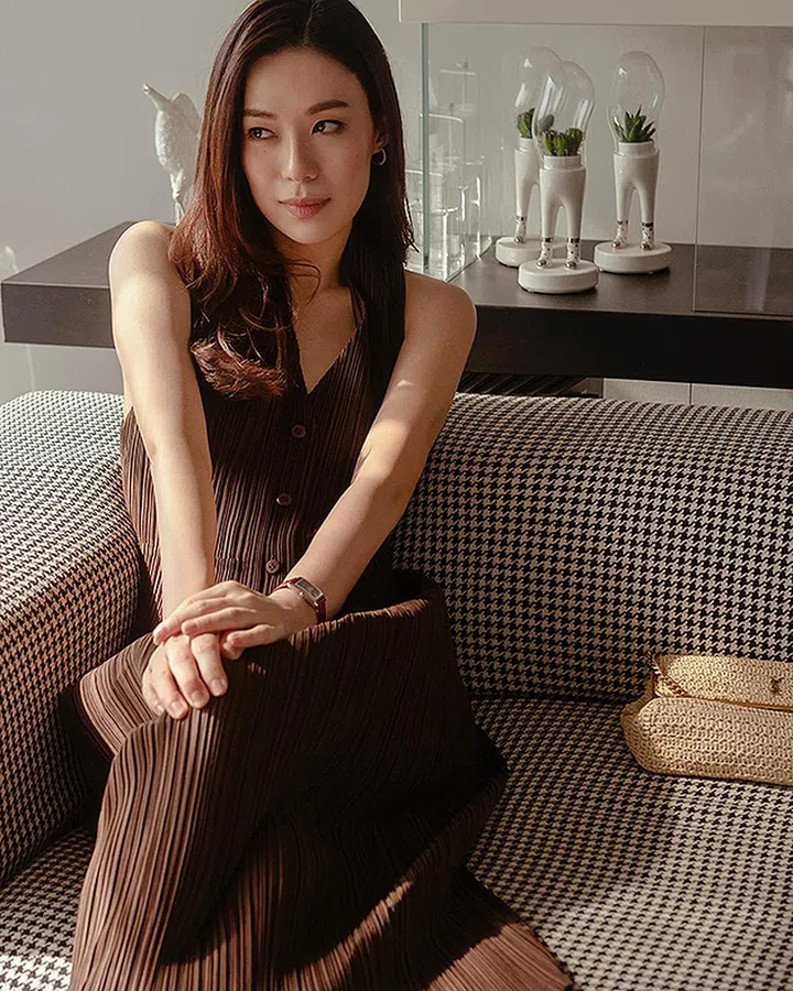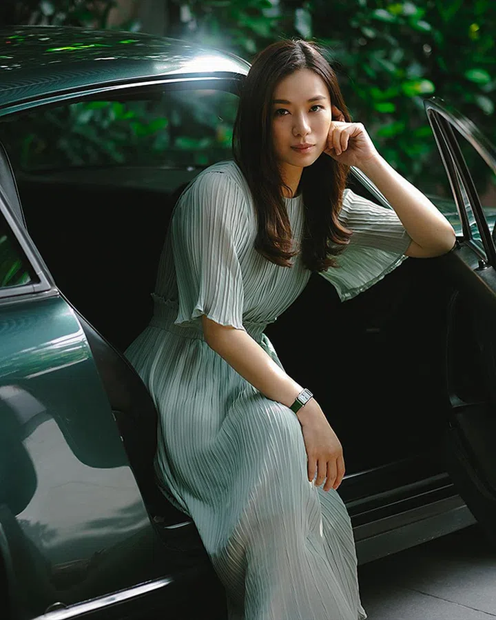 风格优雅的Rebecca,也是主张优雅态度的瑞士表牌Longines的品牌好友。这身造型她以轻盈的褶饰连衣裙搭配同色系绿调腕表,造型清新婉约。哪里买类似服装?比如Pleats Please Issey Miyake,本地设计师品牌GINLEE Studio,还有位于Ngee Ann City三楼的品牌Innit等等。