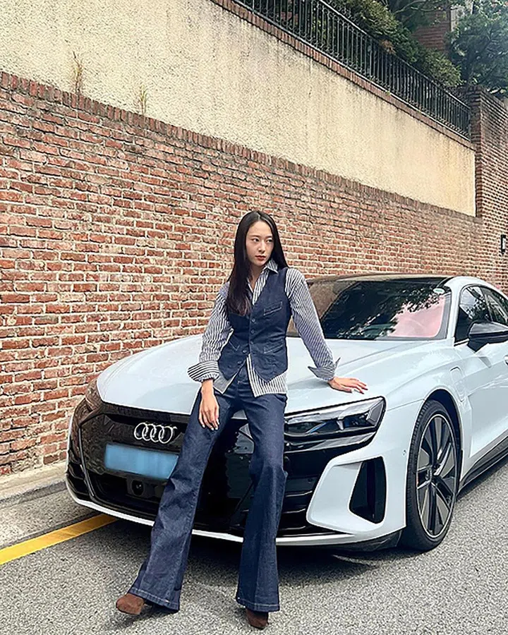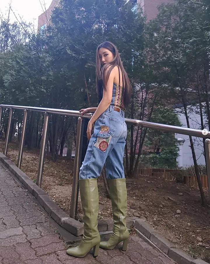 在公布与《黑暗荣耀》男主角李到晛的恋爱关系后,林智妍的脸洋溢着幸福的笑容。恋爱中的女人最美,不妨参考林智妍的穿搭,将高跟鞋带入牛仔造型,即有女人味还能显腿长。