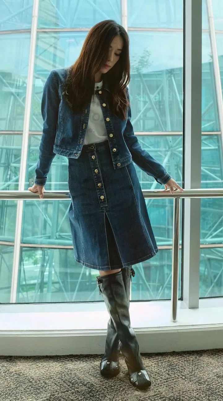 想穿出毫不费力的坦率风?可效仿林慧玲这身Louis Vuitton牛仔外套和及膝裙套装的搭配法,不管任何年龄和身型都能驾驭。