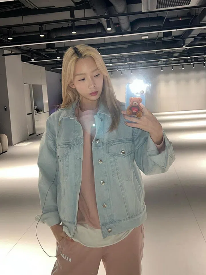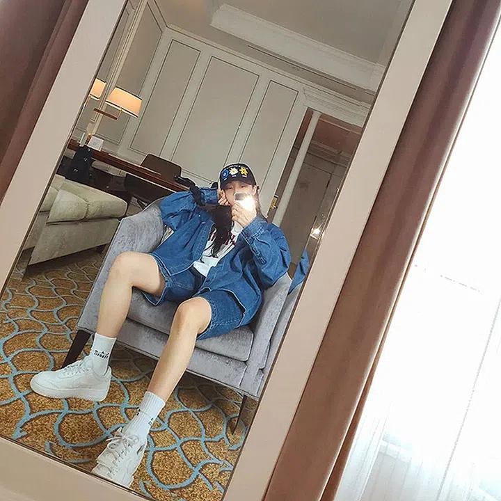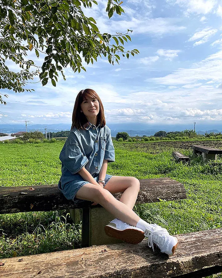欧萱平日的着装风格偏休闲、简约,给人清爽、明快的感受。这张照片她穿着Prada牛仔衬衣搭白球鞋在日本旅行,造型同样轻松不费力,而且还很显腿长。