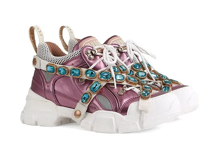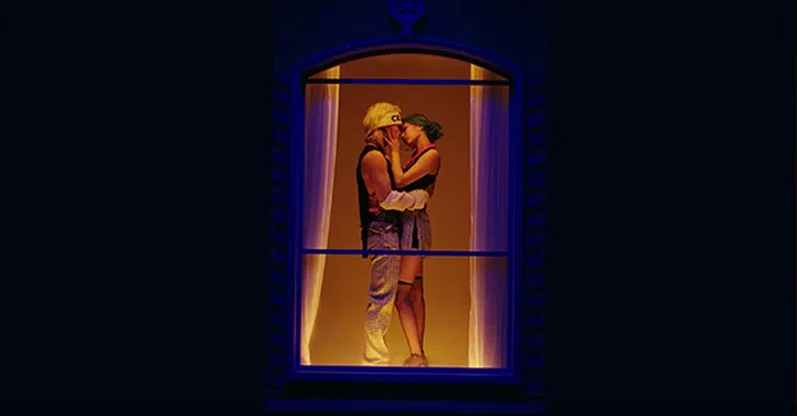这一幕风格突变,DAWN金晓钟与泫雅上演罗密欧与朱丽叶,在落地窗前大演痴情剧码。DAWN金晓钟身穿的长裤,其实来自Givenchy秋冬女装系列,脚上穿着同款印花运动鞋,搭配Celine羊毛头戴以及腰带。叛逆中的潮男都这么痴情的吗?
