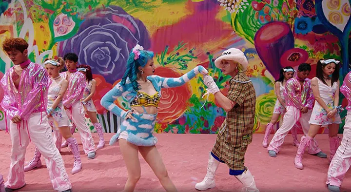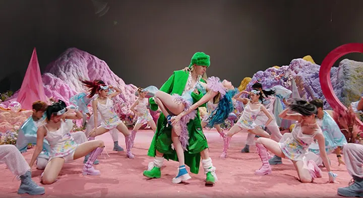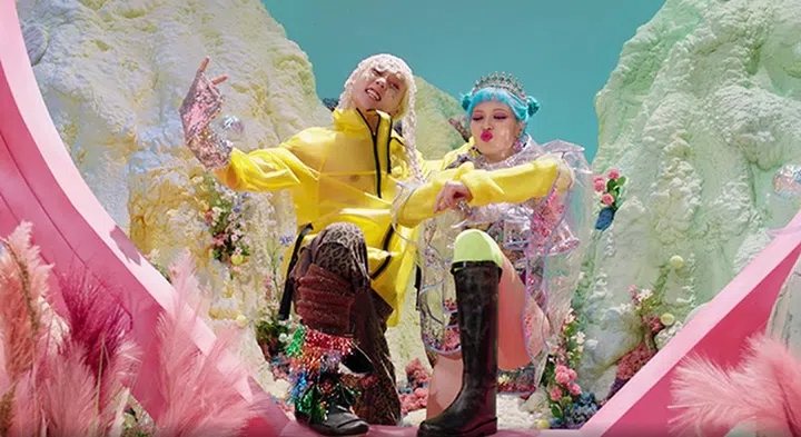 MV里五彩斑斓的梦幻场景和破格前卫的服装搭配,更是让人意犹未尽! 马上就来回顾两人在MV中的精彩造型。