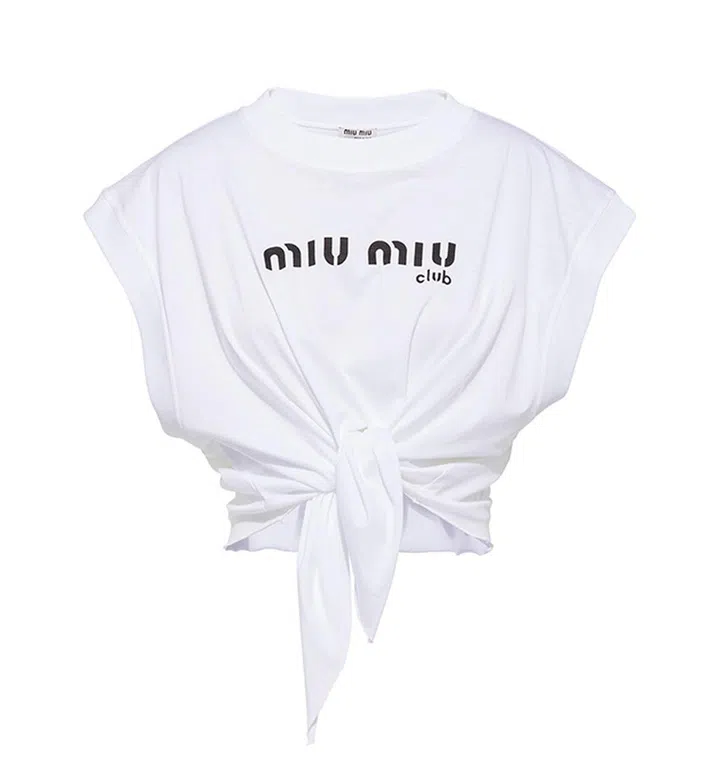 小编讲解:那其实不是一件裙,而是Miu Miu推出的上衣!造型师把衣服的蝴蝶结松开并重新剪裁,原本的上衣就变成了醒目的短裙!