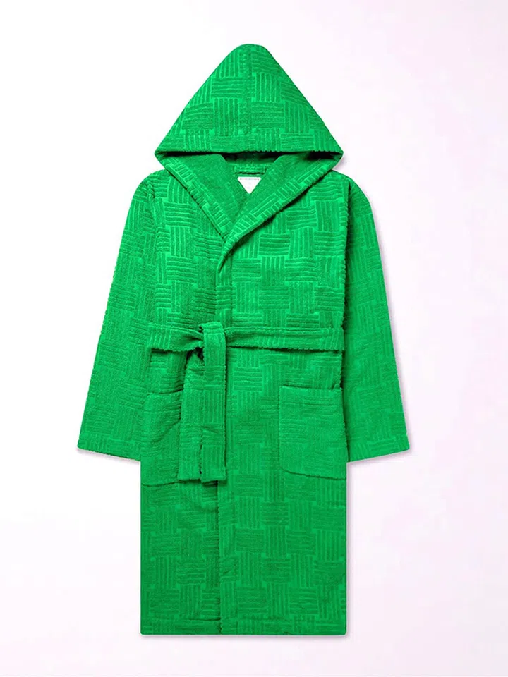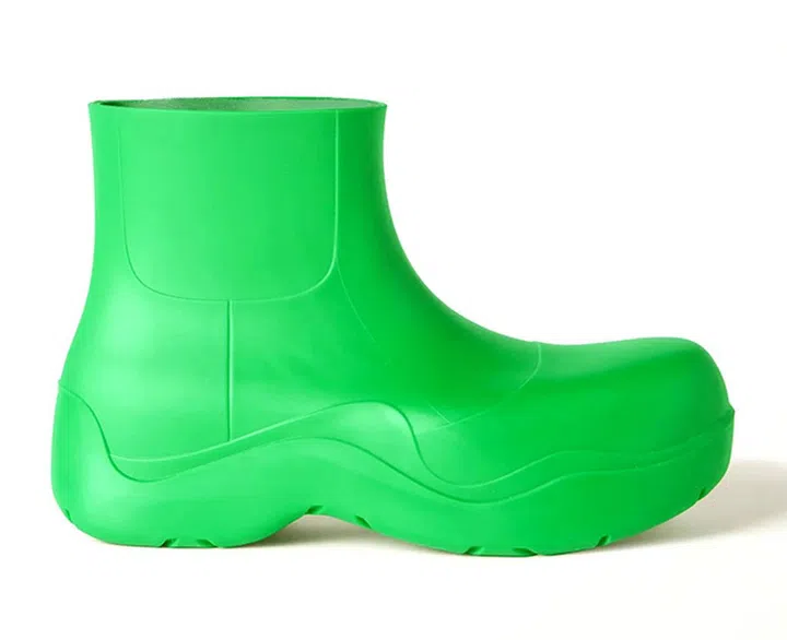 彼得潘DAWN金晓钟以一身醒目的绿色震住全场。这套造型以Bottega Veneta的编织棉毛圈布长袍以及橡胶雨靴,搭配日本街头品牌ShoowTime宽廓形中长裤。