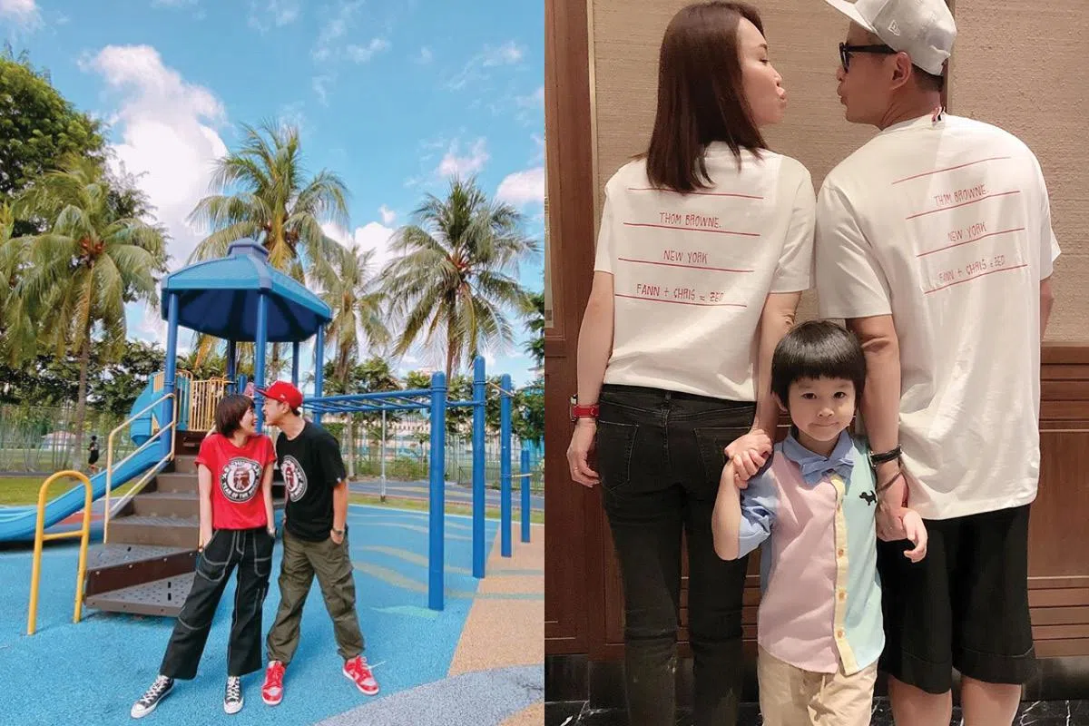 情侣装?穿上同款的情侣T恤,最简单不过。范文芳及李铭顺就穿上Thom Browne白T恤,还在背后客制印上"Fann+Chris=Zed",更别具意义。
