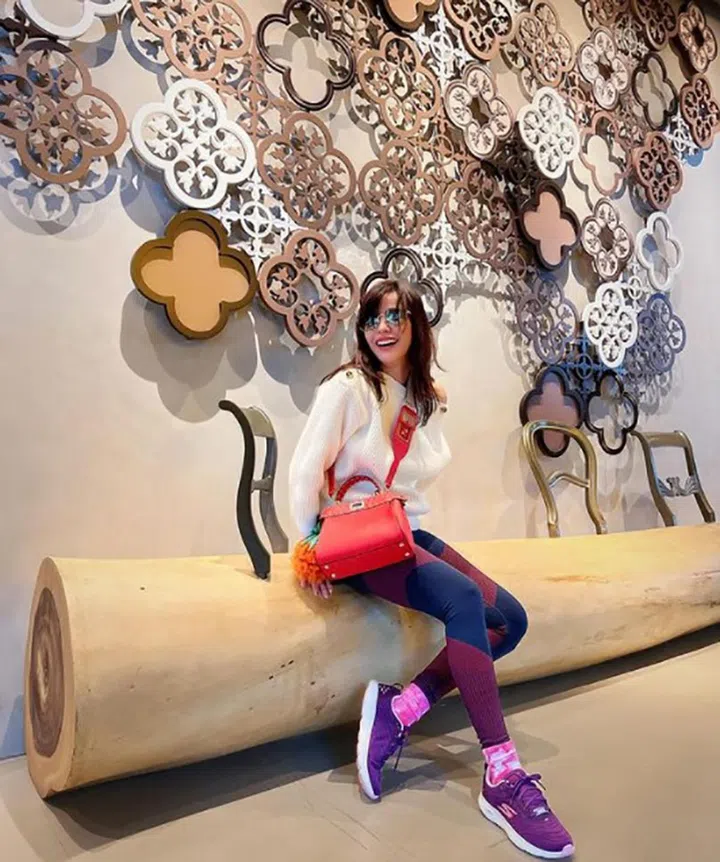 没什么比鲜艳活泼的色彩,更能打开快乐旅游的心情模式!不妨效仿阿姐郑惠玉,在出游时穿上色彩醒目的紧身裤、袜子和运动鞋和手袋,即可朝气十足的到处趴趴走!