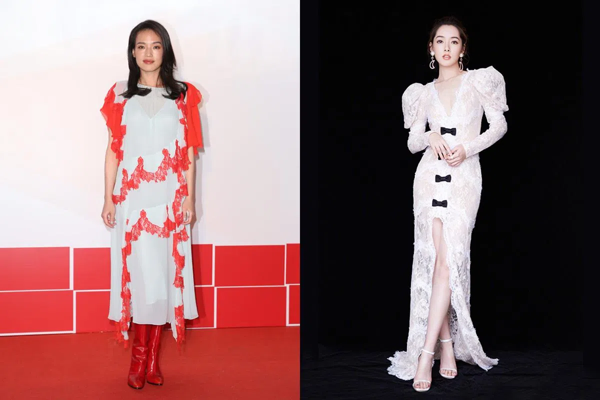 台湾演员郭碧婷以Alessandra Rich透视白蕾丝连衣裙亮相《2017移动视频风云盛典》,“羊腿袖”+蝴蝶结+高衩的设计让她穿出古典的优雅,完美演绎时下流行的复古华丽风。