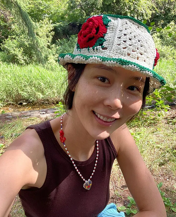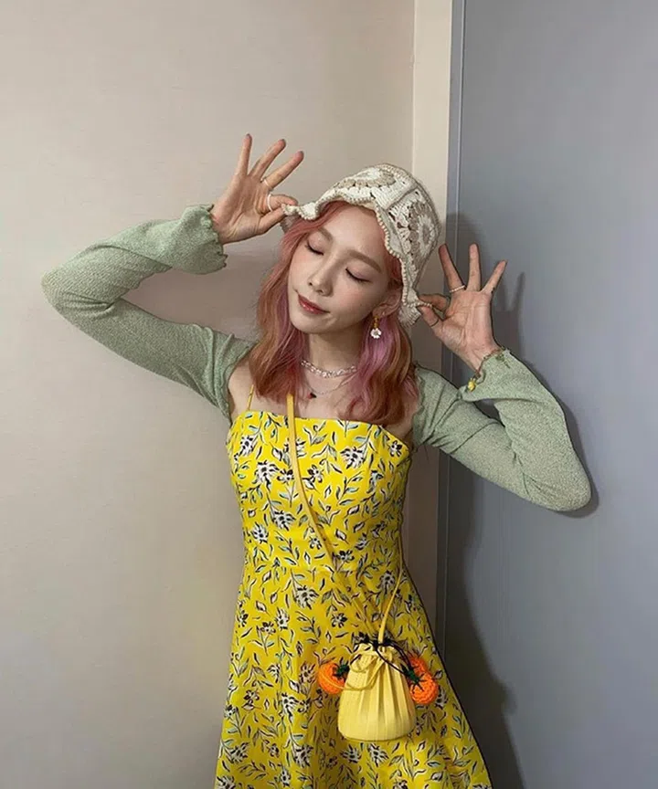 滑一滑韩国爱豆的IG,钩织遮阳帽绝对是出镜率最高的单品之一。泰妍戴着的钩织帽来自韩国当地潮牌Awesome Needs,小太阳花图案设计可爱浪漫,瞬间提升造型感。