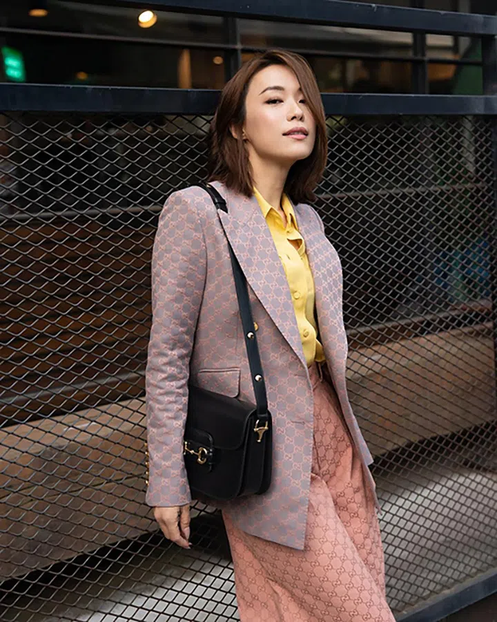 通常在怀孕四个半月的时候,胎儿已经开始迅速增长,孕妇腹部会变得更加圆润,有些可看到明显凸起。不过林慧玲“藏孕肚”的穿搭真的很厉害啊,不知道是不是可以参考来遮小肚肚呢(捂脸)?比如八九月时穿的这套Gucci粉、紫pastel色调+明黄色再搭Horsebit 1955肩袋的造型,不仅在色彩上分散注意力,阔腿裤的高腰剪裁也起到修饰身材的作用。