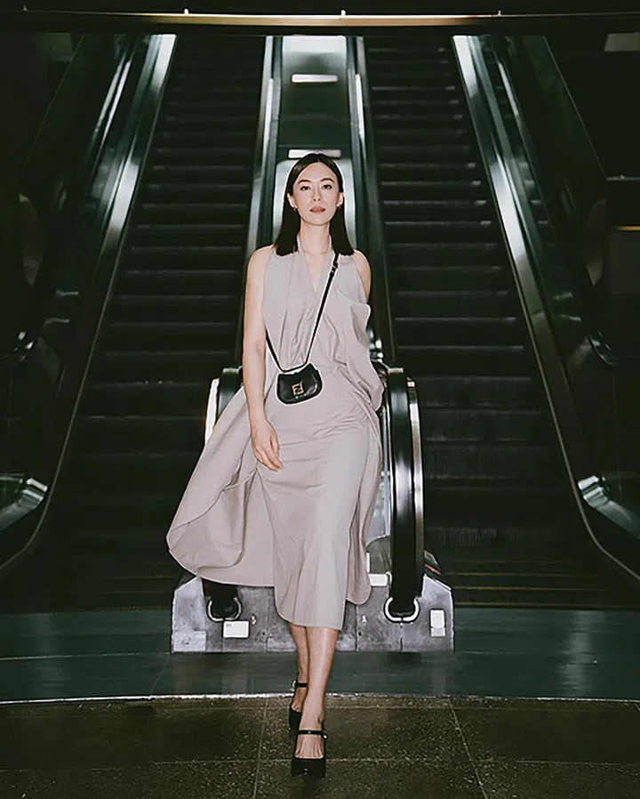 还记得早前本地女星齐齐背着Fendi C’mon手袋打卡扶手梯?C’mon(“come on”的informal 缩写)系列肩袋,造型散发时尚感,同时也展现出精湛的皮革工艺。还推出mediun、mini及nano三种尺寸,让你依照需求“各取所需”。上图林慧玲用简约、飘逸的挂脖连衣裙搭配(背后为优雅的露背设计),展现悠然松弛的自在美。