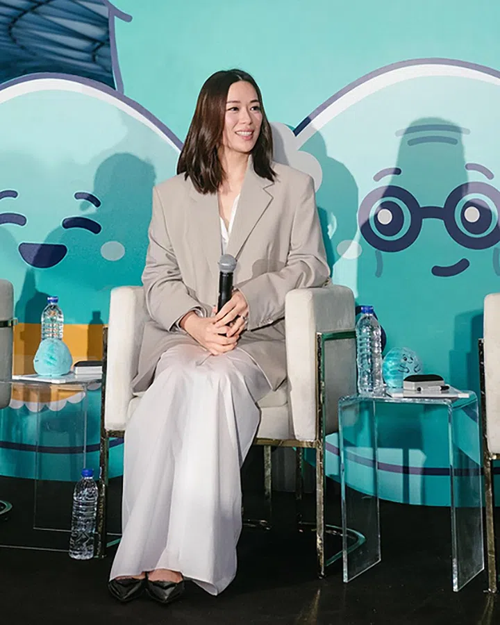 林慧玲9月在Beyond the Label Festival助力宣传心理健康,穿着来自Prada的服装亮相。超长衬衣裙+宽松米色西装,短发清爽又优雅,不得不说林慧玲衣品真的很棒。