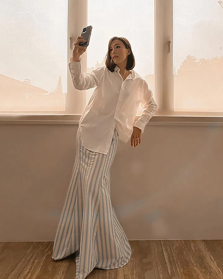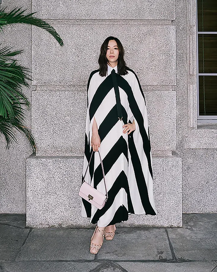 不得不说林慧玲穿Valentino效果超棒,之前出席本地Valentino Black Tie活动,还穿着品牌秋冬系列的亮眼金属粉大衣及粉色衬衫。而这套装扮采用了醒目的黑白条纹图案,营造出强烈的视觉冲击力。