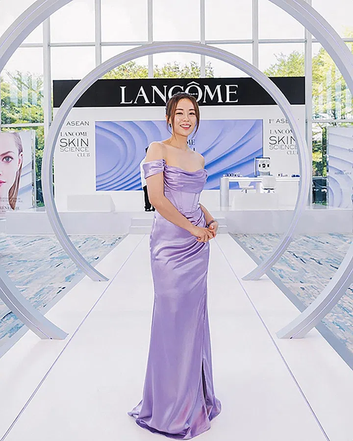 还有出席Lancôme活动的这款胸衣元素lilac色调礼服,还具备露肩设计,造型醒目又有女人味。