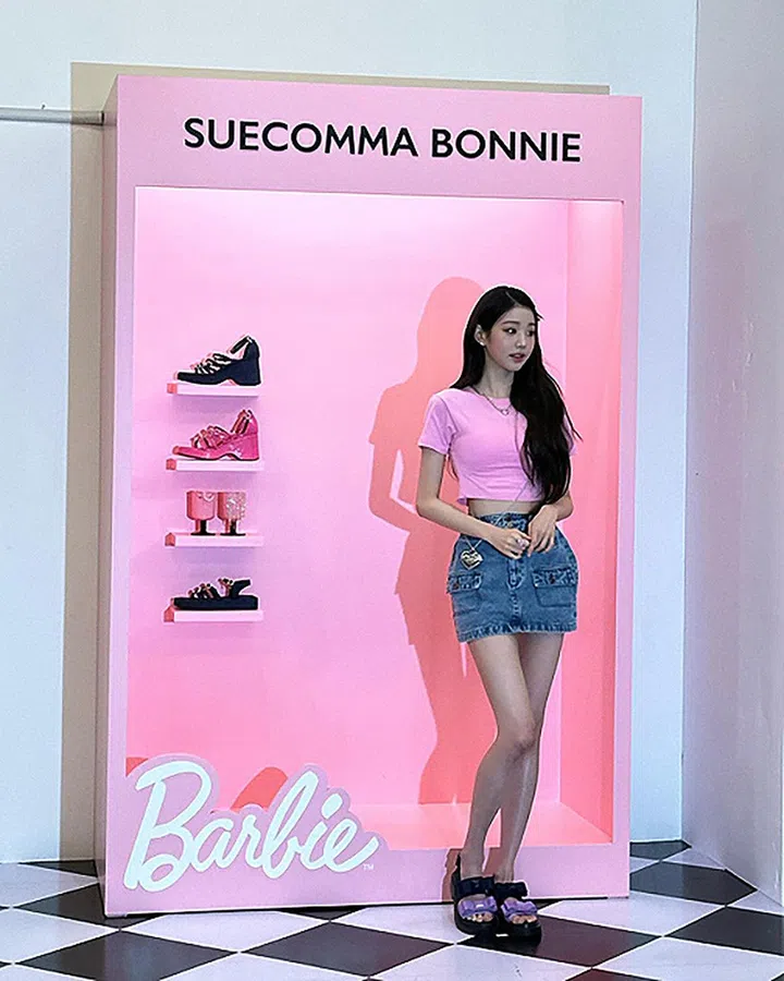IVE成员张员瑛也有着“人间芭比”之称。早前出席Suecomma Bonnie X Barbie活动,以粉色crop top搭配迷你牛仔裙,身材高挑纤美,站在粉色背景前犹如包装中走出来的真人芭比。