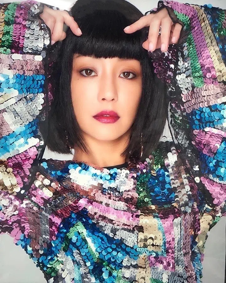 谢欣颖以《华灯初上》里的酒店小姐“黄百合”造型为大家拜年。璀璨夺目的多彩亮片上衣搭配高冷的发型与彩妆,以华丽如虎的气势,祝贺大家虎虎生风。