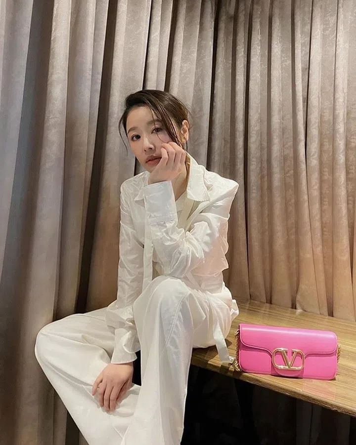 林心如以帅气的白色套装迎新年,大气的廓形上透漏出酷感。为不让造型的色彩过于单调,林心如也带上了Valentino今季最新VLogo芭比粉色肩袋,为造型画龙点睛。