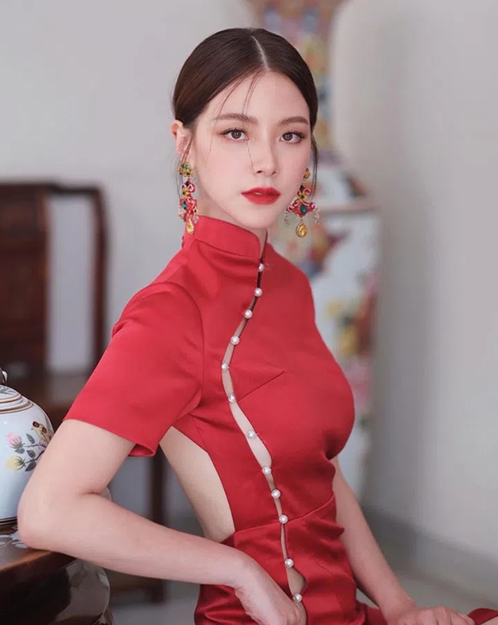 泰国当红女演员吕爱惠穿上挖洞设计旗袍,再佩戴上创意独有的耳坠,精致唯美的造型中穿出性感火辣,艳丽四方。