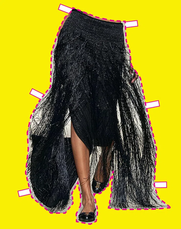 刻意露出“打底裤”的璀璨流苏式迷你裙,让你在派对或舞池赚足眼光。外加今年大热的“露底裤边”造型,为华丽造型添一丝休闲随意。