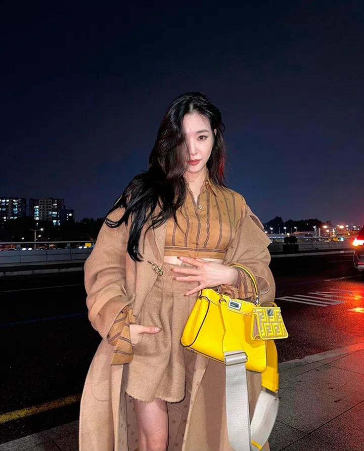 月前Fendi联合全球上百位明星及influencers演绎品牌经典Peekaboo手袋,并推出 Peekaboo胶囊系列,男士也能轻松驾驭(男款Peekaboo ISeeU bag)。韩星Tiffany为手袋搭配Strap You宽肩带及Nano Peekaboo Charm,令手袋造型显得更为活泼。