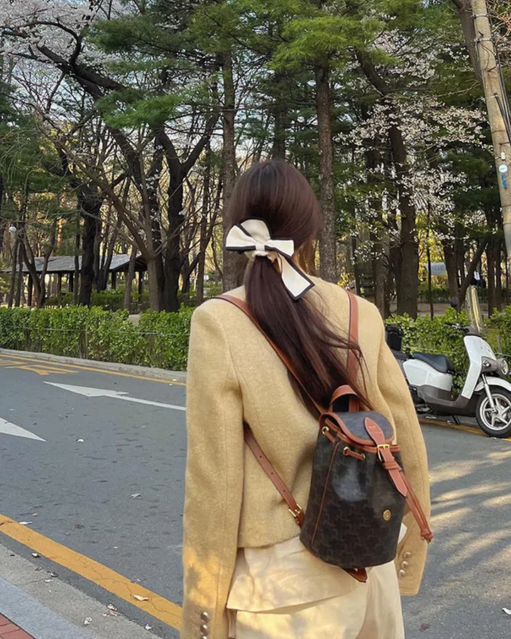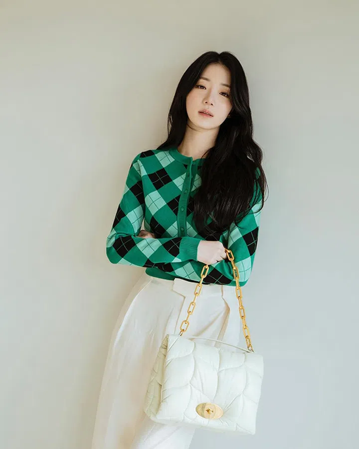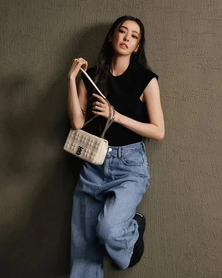 这款柔软羊皮打造的Burberry Lola bag,拥有18种丰富色彩可选。袋身为经典绗缝设计,装饰Thomas Burberry Monogram金属硬饰,造型利落且现代。像李多喜这样搭配黑上衣及宽松牛仔裤,简简单单也很飒。
