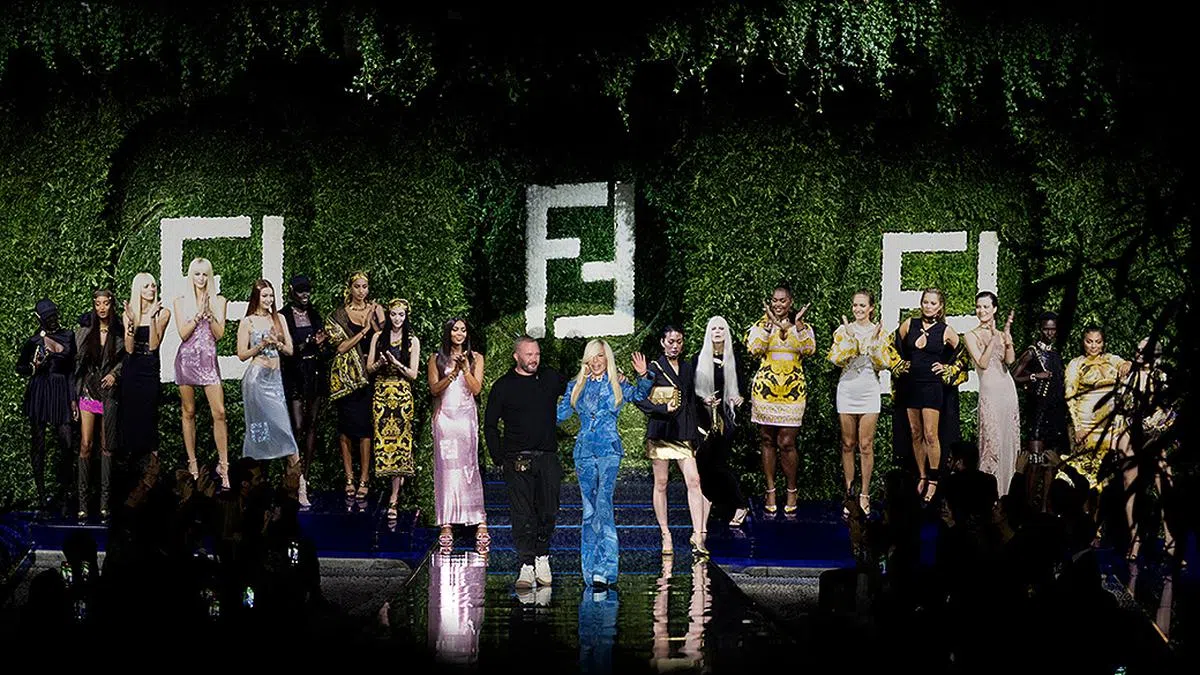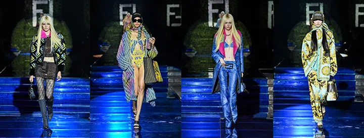 Kim Jones和Silvia Venturini Fendi分别操刀的女装及男装 ,灵感来自Versace于1990年代中后期的品牌风貌。不仅将Fendi经典“FF” Monogram与Versace的希腊回纹(Greek key)结合起来应用于系列服饰,也演绎了Versace众多标记性looks,并巧妙把Fendi元素暗藏在巴洛克风纹样中。同时,两人充分运用Fendi的工艺资源,以优雅的方式进行设计。