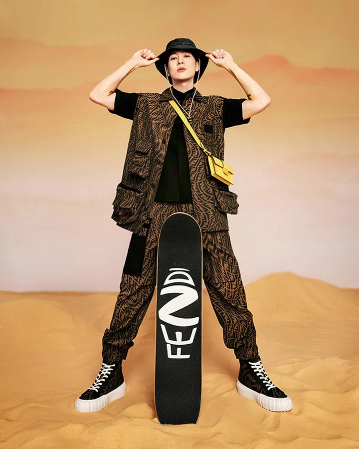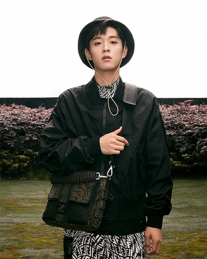 在《创造营2021》有亮眼表现的的吴宇恒,身穿Fendi黑色飞行外套,搭配黑白扭曲FF老花纹短裤,大展时尚“童子军”范。