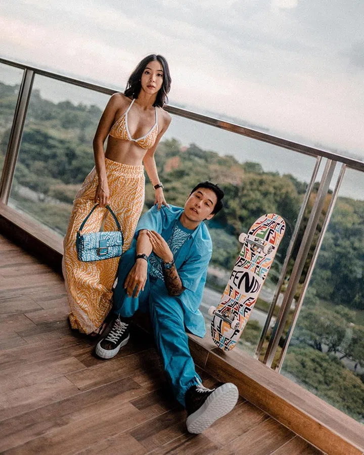 本地演艺圈的时尚夫妻档Jonathan和Amanda分别穿上Fendi Vertigo新装。一黄一蓝的扭曲FF老花纹完美呼应,超有型!