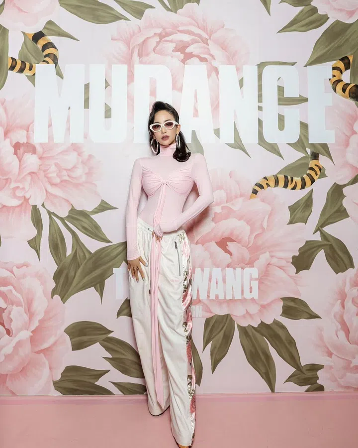 该MUDANCE概念空间,将于即日起至8月31日整月在Voco Orchard举行。Team Wang的最新系列以中国国花牡丹为设计元素,并用粉色、花朵与印花构筑起了一个盛夏派对。Fiona当晚以浅粉色紧身衣搭配系列的拼接印花长裤,并佩戴Gentle Monster墨镜及个性大耳环,造型在派对上格外抢眼。
