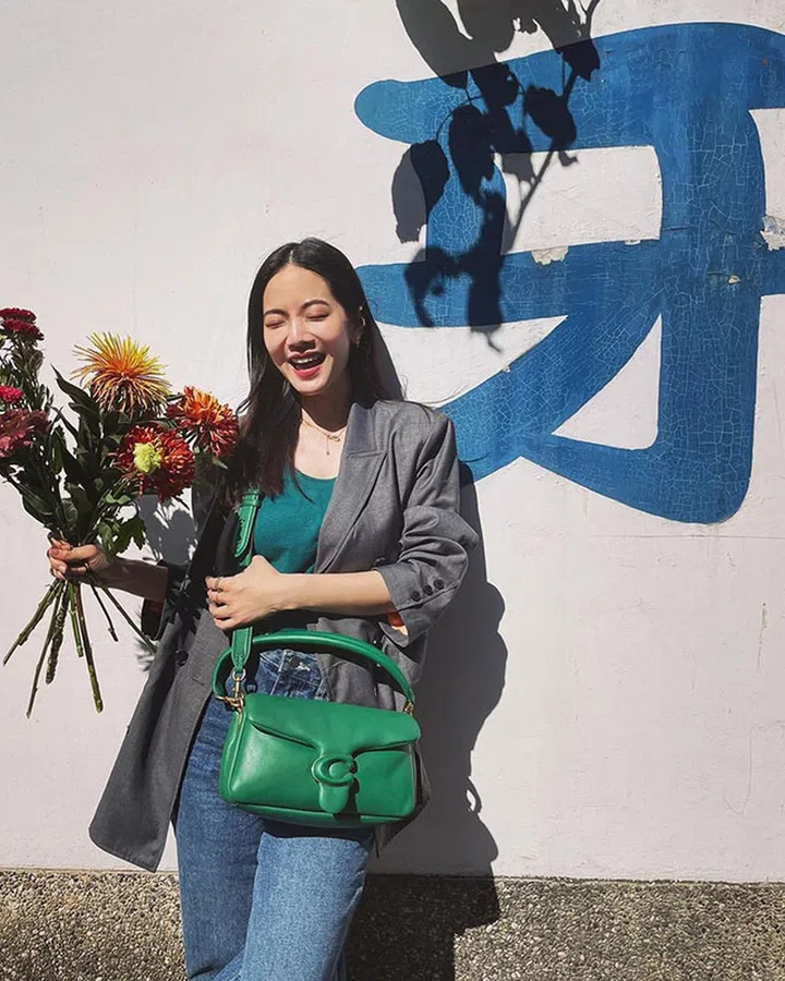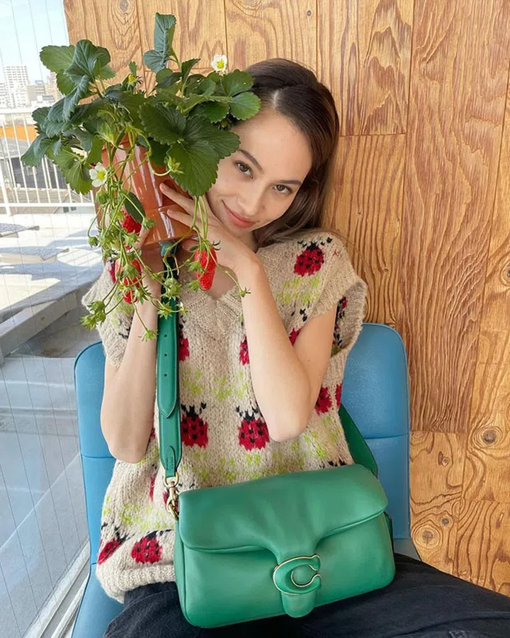 身为Coach Family成员之一的Kiko,身穿品牌春夏系列瓢虫针织背心套衫,搭配绿色Tabby枕头包,完美演艺可爱的田园风。