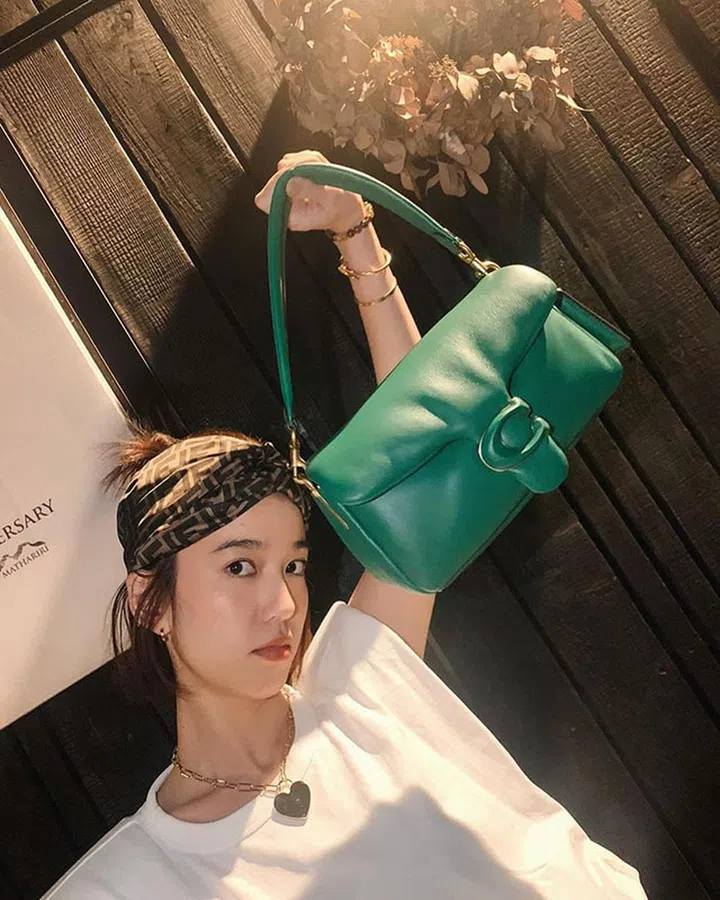 农历新年前,欧萱就已在IG抢先分享了这款Tabby Pillow包。视频中,她拎着巨型的Tabby枕头包在公园找拍摄角度,而里头装着一般尺寸的枕头包,超有趣!最近她也预告了将开设自己的甜点店!