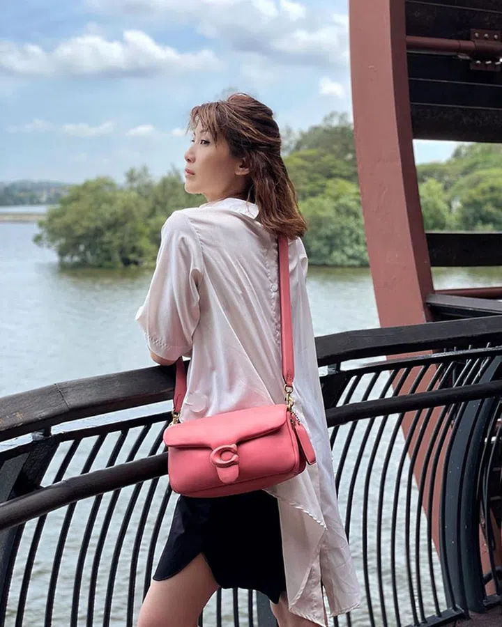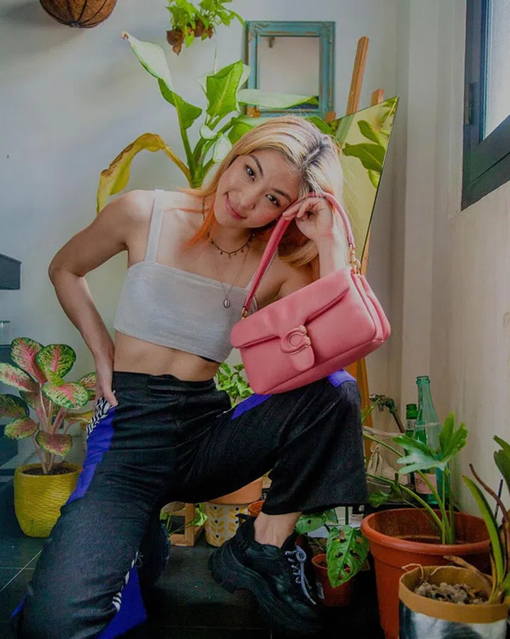 最近刚发新单曲《Just Shut Up》的Narelle,也拎了同款Coach Tabby枕头包。她穿上设计简约的运动胸罩及运动裤,并隐约露出腹肌,大展阳光的少女感!