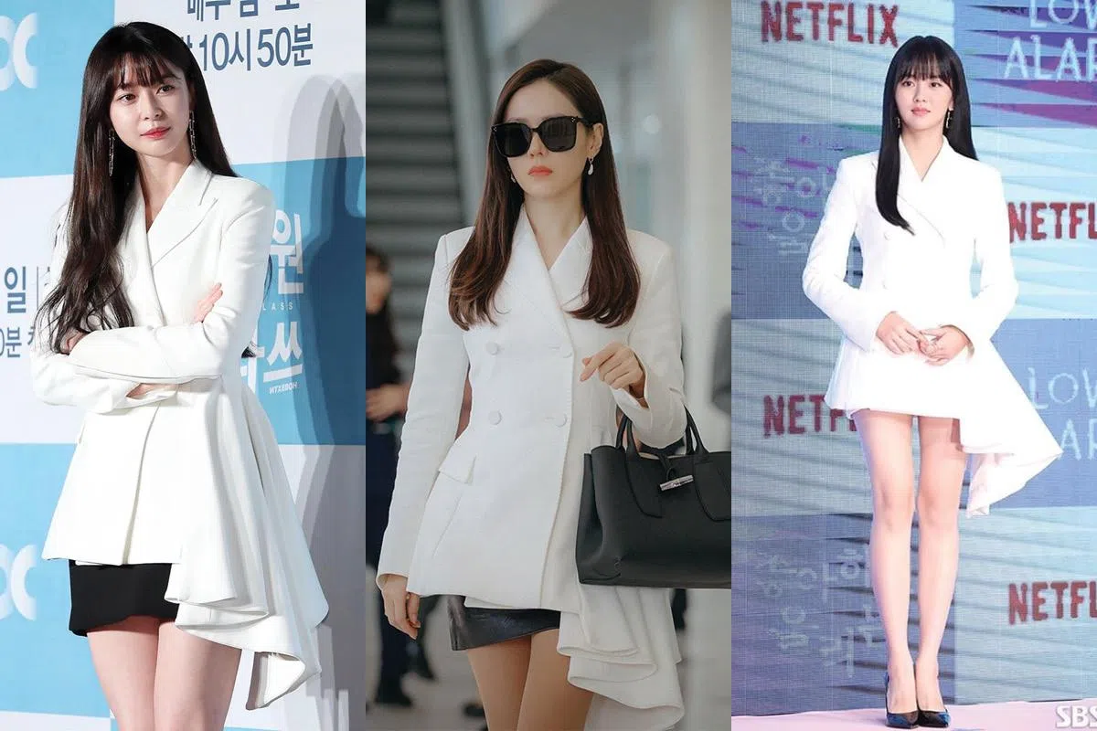 7 Feb 2020孙艺珍在《爱的迫降》穿的OFF-WHITE白西装,原来她们也穿过! 孙艺珍在韩剧《爱的迫降》中穿的这件Off-White白色"裙摆"西装外套超红,不少女星如Jessica郑秀妍、请夏、金所泫等都分别穿过亮相。你认为谁穿得最有型?NUYOU TeamcelebritylooksfashionspottedwhoworeitbestwhoworewhatSON YE JIN孙艺珍孙艺珍在热播韩剧《爱的迫降》中回归南韩的这一幕,以一件Off-White白色西装外套+黑皮裙时尚登场,大展霸气的女总裁风范。 KWON NARA权娜拉在新韩剧《梨泰院Class》与朴叙俊饰演情侣的权娜拉,身穿同款Off-White西装外套,改搭棉质短裙亮相新作发布会。她的短刘海发型少了孙艺珍的干练,但多添一丝柔美。 KIM SO HYUN金所泫金所泫也穿上同一件Off-White白西装外套,出席韩剧《Love Alarm》发布会。有别于孙艺珍及权娜拉的黑白配穿搭,她选择内搭白色短裤以营造出“下半身失踪”的视觉效果。这样的穿法,更突显了不规则的裙摆剪裁,整体利落又亮眼! CHUNGHA请夏当红歌手请夏也选择把这件Off-White西装外套当连衣裙穿,一头金发及吸睛的橘色高跟鞋穿出俏皮又性感的韩国女团风。 JESSICA JUNG郑秀妍其实早于2018年11月,郑秀妍已抢先穿上这款Off-White西装外套出席时装周,也唯有她当外套穿,并内搭黑高领上衣及黑皮裤穿出酷帅的绅士范! 分享文章: