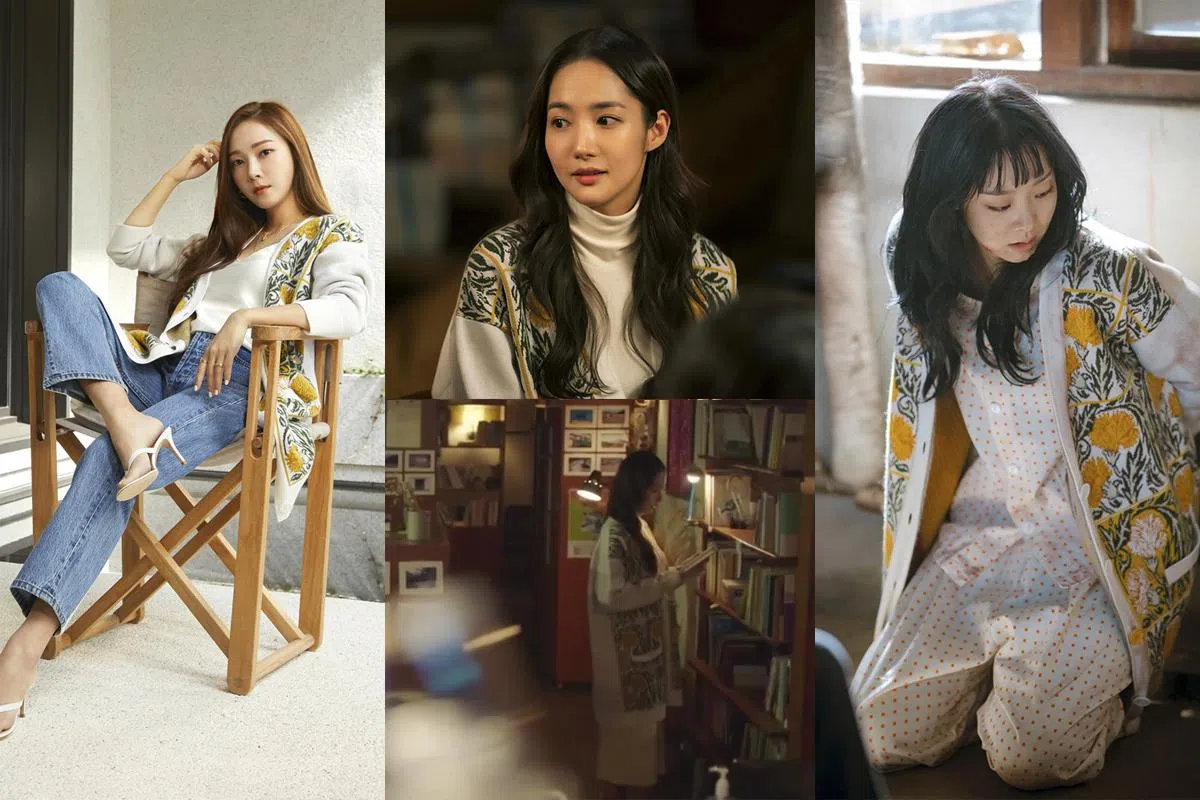朴敏英在韩剧《天气好的话,我会去找你》以同款Loewe花纹开襟衫出镜。同样的微卷长发却因全白的搭配(白高领上衣+白裙)让她散发出截然不同的文艺气质。