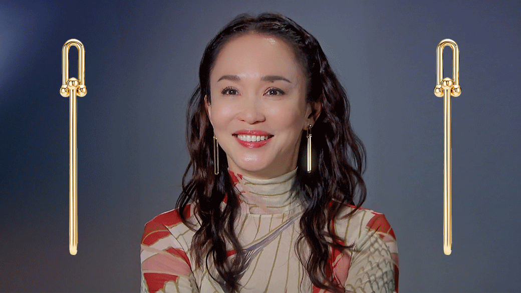 戴Tiffany & Co. HardWear黄金耳坠 $4,000