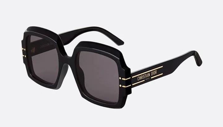 DiorSignature S1U墨镜的镜框线条精简,两侧以金色饰上“CHIRSTIAN DIOR PARIS” 标志,包准让你身边的Dior粉丝抓狂。