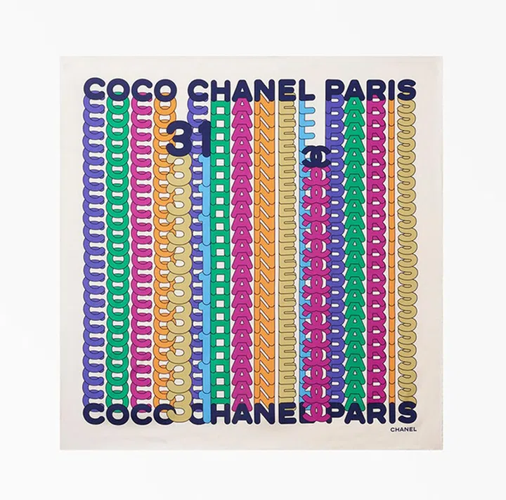 五彩滨纷的 “Coco Chanel Paris” 标志划过高雅大方的米色丝巾,抢眼醒目有朝气。朋友圈中有艺术挂,那就选它!