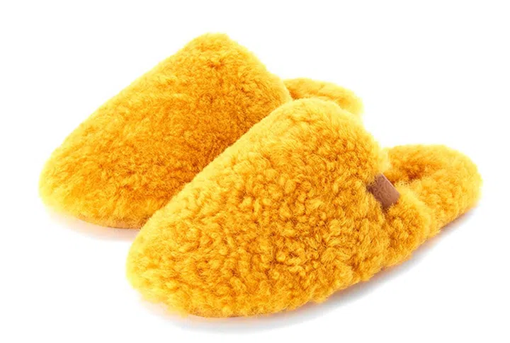 以高质的剪羊毛制成,这款色彩鲜艳的黄色室内拖鞋男女都适合,准备礼物时也无需顾虑太多。
